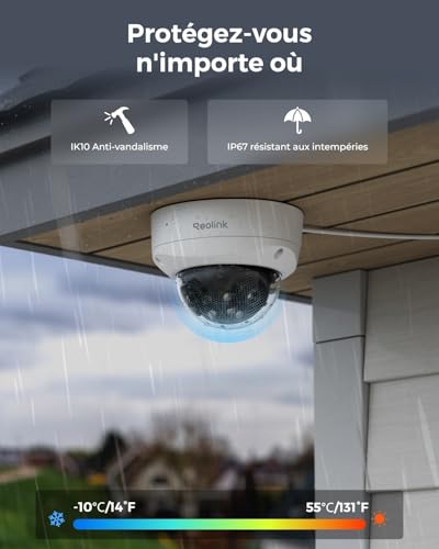 ANTI-VANDALISME IK10 : Soyez tranquille avec cette solution de sécurité robuste, classée ik10 anti-vandalisme. Solution idéale pour tous les scénarios en extérieur et les zones à haut risque. Grâce à un support de rotation intégré, vous pouvez ajuster manuellement et sans effort la direction de l’objectif (Pas de fonction panoramique et d’inclinaison contrôlée par logiciel).