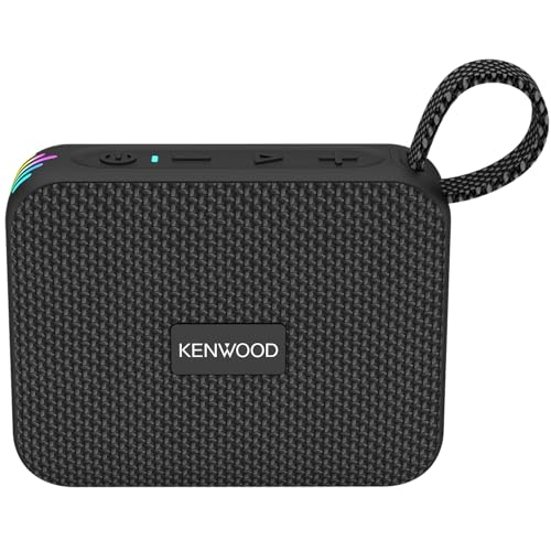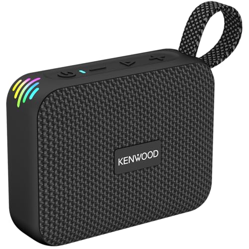 Kenwood AS-60BT-B Haut-Parleur Bluetooth Portable 5 W avec TWS stéréo, IPX7 étanche, radiateur Passif, Effet LED, Batterie Rechargeable jusqu’à 8,5 h, Design Compact et léger, Connexion 10 m, Noir
