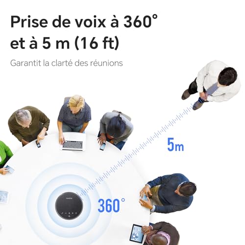 Microphone USB pour Conférence Bluetooth Haut-Parleur pour PC, réduction du bruit, Capture vocale à 360° 43 heures en veille, Conference Speaker compatible avec Zoom Teams Skype, Home Office