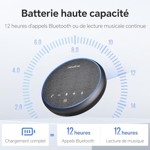 ✅【360 ° et 16 pieds de réception vocale】. Le kit mains libres Bluetooth NewPie est équipé d’un réseau de microphones multiples qui vous offre une expérience réellement immersive. L’algorithme d’intelligence artificielle breveté de notre haut-parleur de conférence réduit les bruits de fond et optimise la voix en temps réel pour garantir que toute l’équipe vous entende avec une clarté cristalline, même dans les environnements bruyants.