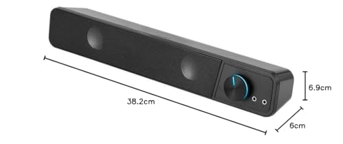 Speedlink BRIO Barre de Son stéréo – pour Ordinateur, Excellente qualité Audio, 12 Watts, Design Compact, 2X Connexion Jack 3,5 mm + Prise USB A, contrôle du Volume, Noir