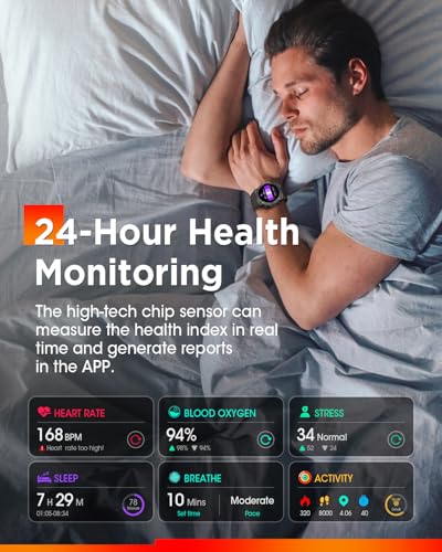 SUIVI COMPLET DE LA SANTÉ: Montre connectée homme surveille facilement votre santé grâce à des capteurs de santé avancés 24h/7, qui suivent la fréquence cardiaque, la pression artérielle, SpO2, la qualité du sommeil, le niveau de stress et l’état émotionnel, et enregistre et génère automatiquement des rapports dans l’APP. Parfait pour les amateurs de fitness et les professionnels, ce tracker de fitness peut vous aider à optimiser vos entraînements et à rester en bonne santé.