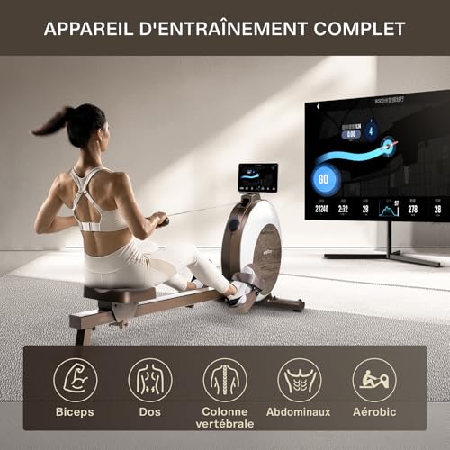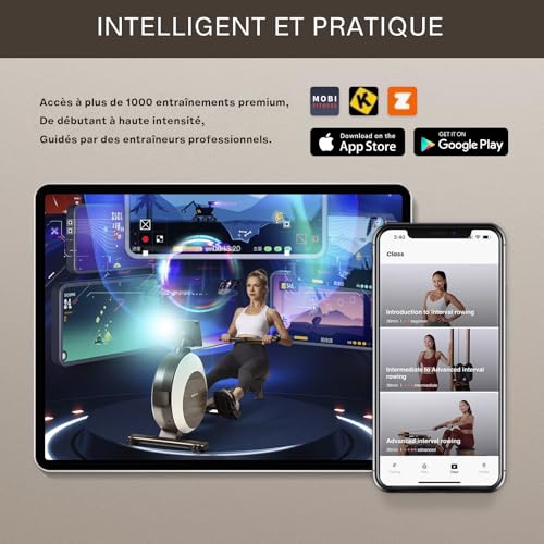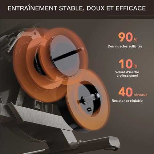 Rameur pour la Maison, Rameur Magnétique Intelligent avec 40 Niveaux de Résistance, Design Silencieux, Rameur Compact, Montage Facile (Compatible avec Apple Watch & Application)