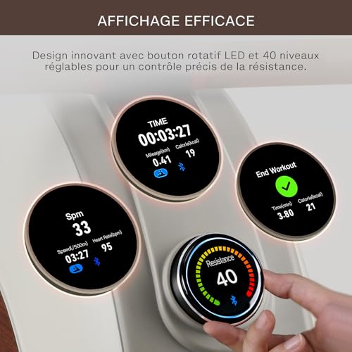 40 niveaux de résistance ajustables : Grâce à ses réglages précis, Résistance maximale 45KG,Luka convient aussi bien aux débutants qu’aux sportifs confirmés. Le système magnétique électrique assure des mouvements fluides et stables, sans interruption.