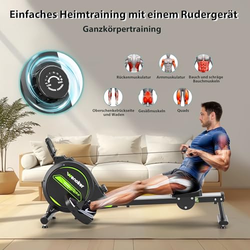 Wenoker Rameur magnétique pliable pour la maison, capacité de charge de 160 kg, silencieux et lisse, avec support de tablette pour écran LCD et coussin d’assise confortable