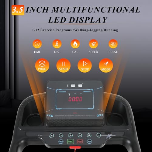 ISE Tapis de Course Pliable Electrique Professionnel, Tapis Roulant Electrique Moteur2,0 HP, Vitesse Réglable, Écran LED, Treadmill 12 Programmes, Tapis de Marche Pliable Maison, Tapis de Sport Course