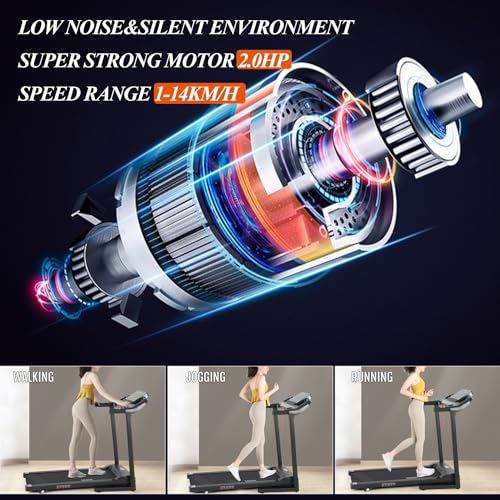 🏃Conception silencieuse, tapis roulant de sport pliable est équipé d’un moteur de 2,0HP de haute précision et à faible bruit et d’une ceinture de course multicouche antidérapante, garantissent durabilité et silence pendant l’utilisation du tapis de course. Permet une course de haute qualité/haute intensité et en même temps offrez un environnement d’exercice calme/confortable sans perturber le repos/le travail des autres, vous permettant de courir facilement et sans fardeau.