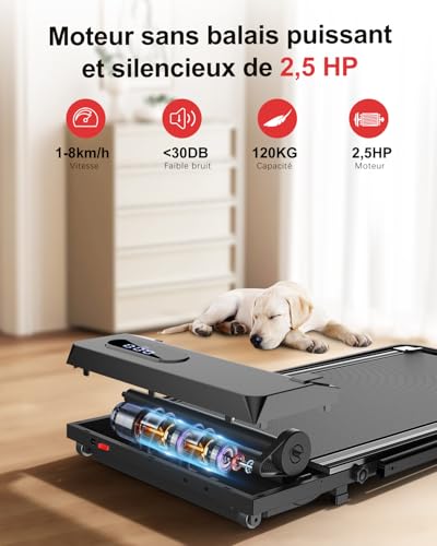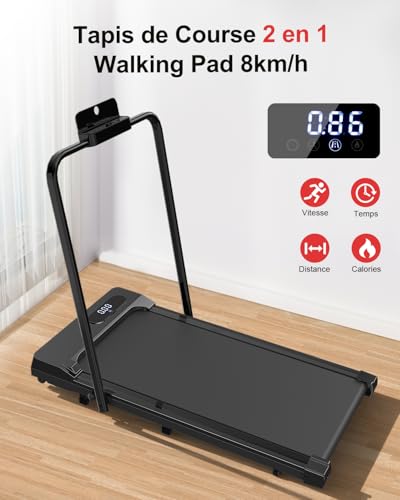 Tapis de Course Électrique Pliant 2 en 1,Walking Pad 1-8 km/h, 2.5HP -Tapis Roulant électrique Extra Large 40cm- Télécommande et Écran LCD-Cadre Renforcé 130KG Max-pour Bureau à Domicile