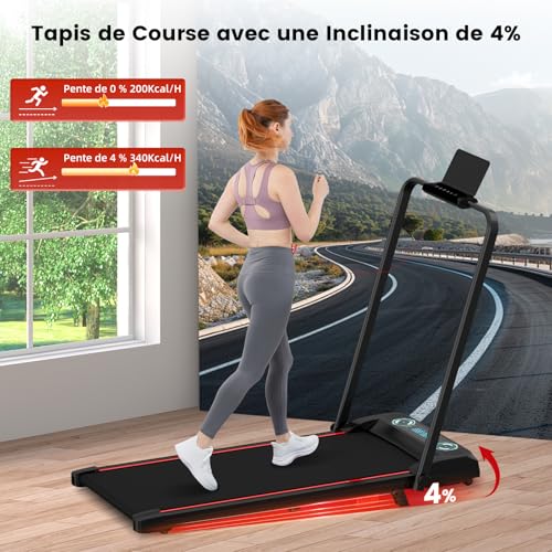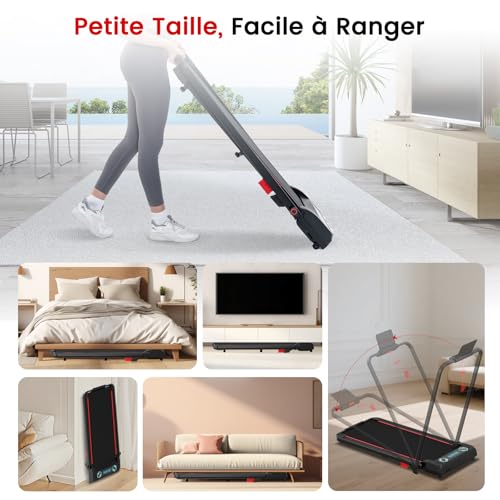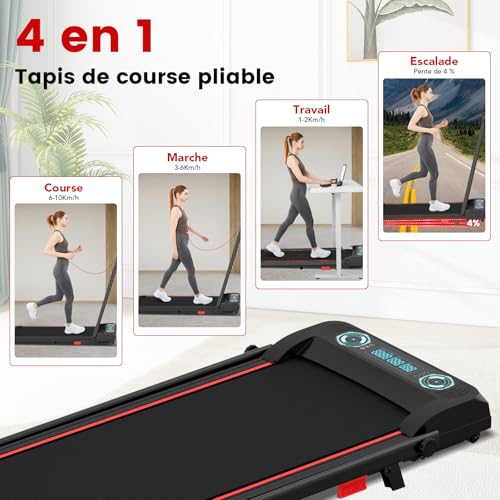 【Tapis de course intelligent 4 en 1 】Plus qu’une simple fonction ! Ce tapis de course innovant combine intelligemment quatre modes : tapis de marche quotidien, tapis de course pliable, tapis de marche dissimulé sous la table et tapis d’escalade. Il répond à tous les besoins de fitness de toute la famille, de la marche rapide au sprint.