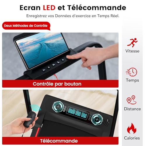 【Données intelligentes à portée de main】Contrôlez votre entraînement à volonté ! Réglez facilement les paramètres grâce à une télécommande pratique ou un panneau de commande intuitif. L’écran LED clair affiche les données clés en temps réel : durée de l’exercice, vitesse en temps réel, consommation de calories, distance cumulée, pour une visibilité optimale de chaque effort et un aperçu clair des résultats de l’entraînement.