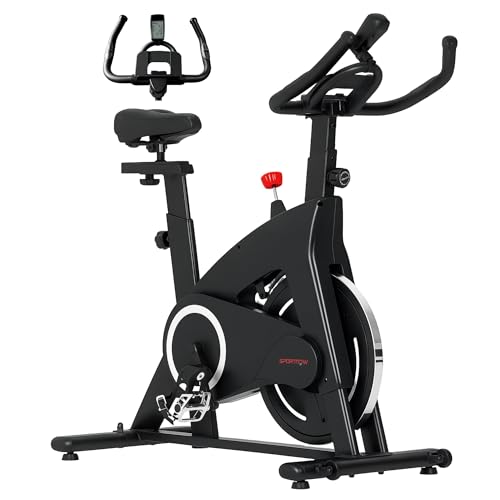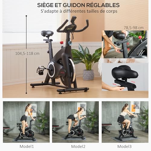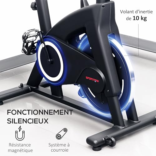 SPORTNOW Vélo d’appartement magnétique vélo d’exercice d’intérieur stationnaire silencieux résistance selle poignée réglables avec capteur de fréquence cardiaque écran LCD pour aérobic de la maison