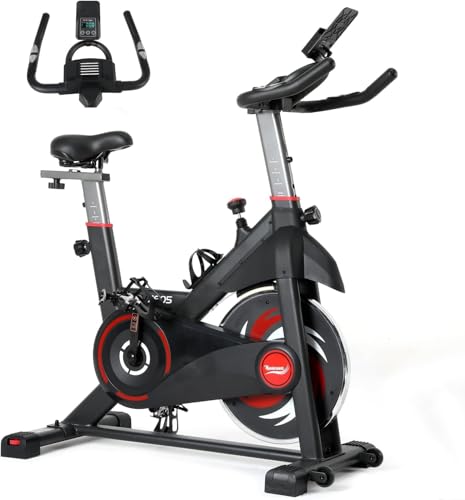 【CONCEPTION RAISONNABLE】: Conception de la carrosserie robuste et stable et les pieds antidérapants rendent vélo appartement plus stable et l’empêchent de trembler pendant l’utilisation. Siège de vélos d’appartement et les pédales renforcées en alliage d’aluminium antidérapant augmentent le confort et peuvent être utilisés pendant longtemps. Équipé d’un porte-gobelet à eau, vous pouvez reconstituer l’eau à tout moment et n’importe où. Des rouleaux mobiles permet de déplacer facilement le vélo d’exercice n’importe où.
