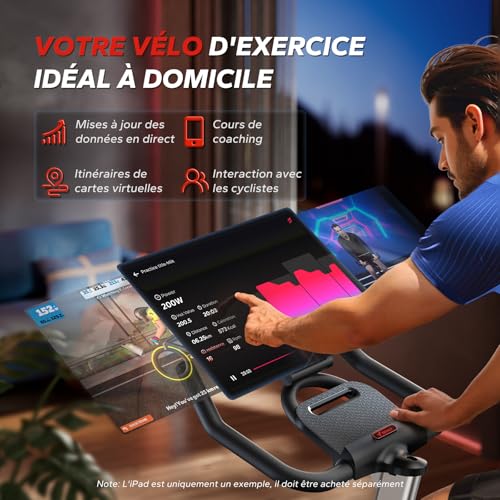 Vélo d’Appartement avec Résistance Magnétique, Vélo de Fitness d’Intérieur Silencieux avec Siège Confortable Amélioré, Écran LCD, Support Tablette, Application Exclusive, Capacité Max 136 kg