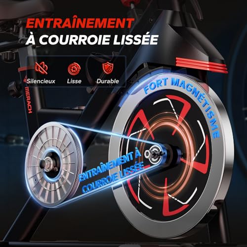 [RÉSISTANCE INFINIE POUR VOTRE ENTRAÎNEMENT]: Ajustez la résistance à n’importe quel niveau, des séances légères aux montées intenses avec ce vélo d appartement. Cette variation de résistance de 0 à 100 % répond aux besoins des utilisateurs de différents niveaux de condition physique. Veuillez noter que l’application Merach affiche uniquement 16 niveaux de résistance.