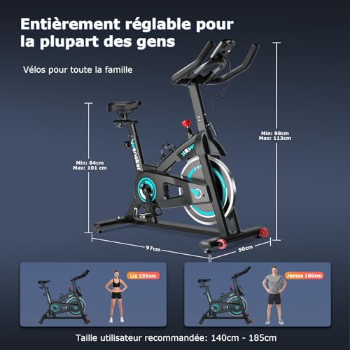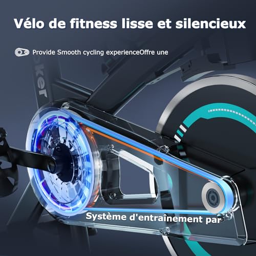 Après des années de recherche, Wenoker a mis au point ce vélo d’appartement amélioré. Il est doté d’une construction en acier aluminium plus épaisse et durable et d’une nouvelle poignée en forme de 7 sur le guidon avant qui garantit que le vélo d’exercice repose fermement sur le sol et qu’il ne vacille pas pendant l’utilisation. Le design élégant noir et bleu est plus bel effet à la maison ou dans votre salle de sport.