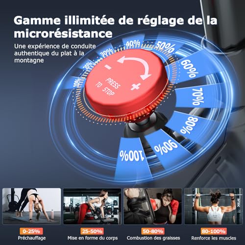 [FREIN & RÉSISTANCE] : il suffit de tourner le bouton pour augmenter ou diminuer le réglage selon les différents niveaux qui vous conviennent le mieux. Appuyez sur le même bouton pour vous arrêter rapidement et en toute sécurité. Le fonctionnement pratique rend les mouvements plus faciles et plus efficaces.