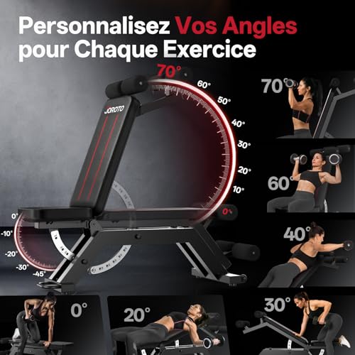 JOROTO MD70 Banc de Musculation Réglable, Banc Musculation Multifonction avec Charge Max 400KG/880LBS, Dossier 8 Positions et Siège 5 Positions Réglable, Banc Abdominaux pour Entraînement Complet