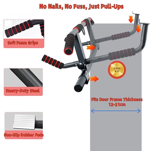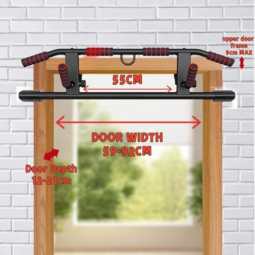 Barre de Traction Porte sans Perçage, Pull Up Bar avec Multi-Prises, Idéale pour Maison & Home Gym Bar de Traction(59-92cm)