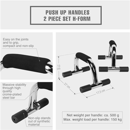 Les push up stand bar ou barres parallèles Gorilla Sports permettent de développer l’équilibre et de travailler tout le haut du corps. Ainsi, il est possible de varier les exercices en travaillant le gainage et la force de préhension. Ces barres chromées sont dotées de mousses antidérapantes pour pouvoir par exemple, réaliser des pompes et ainsi développer efficacement les triceps et pectoraux.