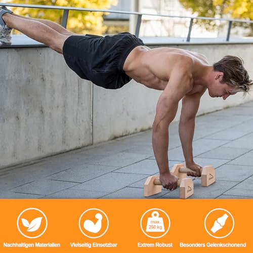 1. Les barre calisthenics sont idéales pour les exercices de compétition et de loisir. Les poignées de pompes en bois sont durables, très stables, antidérapantes et faciles à transporter.