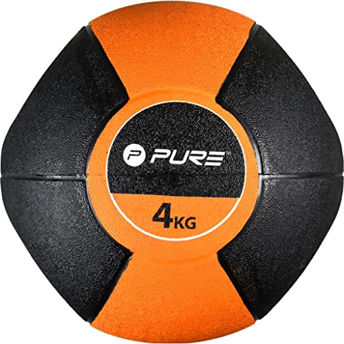 Pure2Improve Ballon Médicinal avec Poignées Ballon d’exercice Ballon d’Entraînement de Forme Physique Fitness Ballon de Gymnastique Yoga Maison 4 kg