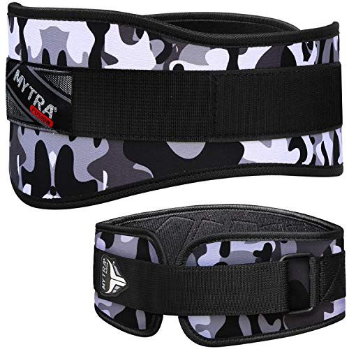 Mytra 6 inch N8 Weight Lifting Curved Belt (Camo Grey, X-Large)