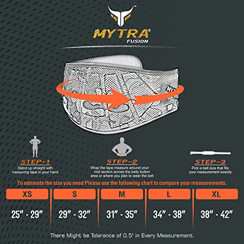 SNUG FIT CLOSURE: Mytra Fusion Ultra Sleek light weight fitness belt has unobtrusive design so it hugs the body without impending motion or berating. Its Mat-B Steel buckle and Velcro closure allow for quick and painless adjustments on the fly.