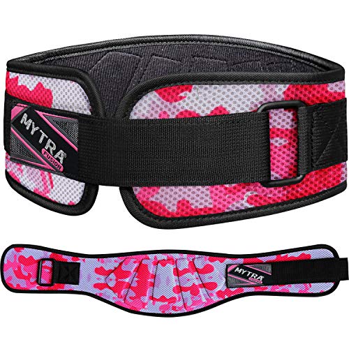 Mytra Fusion Ultra Sleek Camo Fitness Weight Lifting Belt for Heavy Lifting, CrossFit, Bodybuilding & Training Ideal for Both Men and Women (Camo Pink, Large)