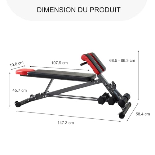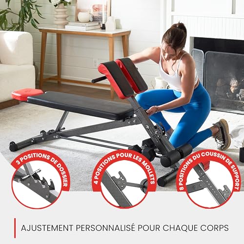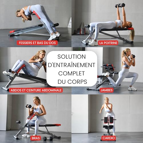Banc multifonction tout-en-un : conçu pour plusieurs entraînements, cible la plupart des principaux groupes musculaires, sculpte vos abdominaux, dos, poitrine, fessiers, ischio-jambiers et abdominaux.