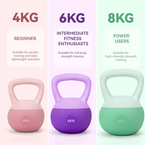 Spécification: HCT STYLE Kettlebell Souple en Vinyle – Haltère Russe Souple 4/6/8 kg, Poids d’Entraînement Sécurisé pour Fitness, Musculation et Renforcement Musculaire