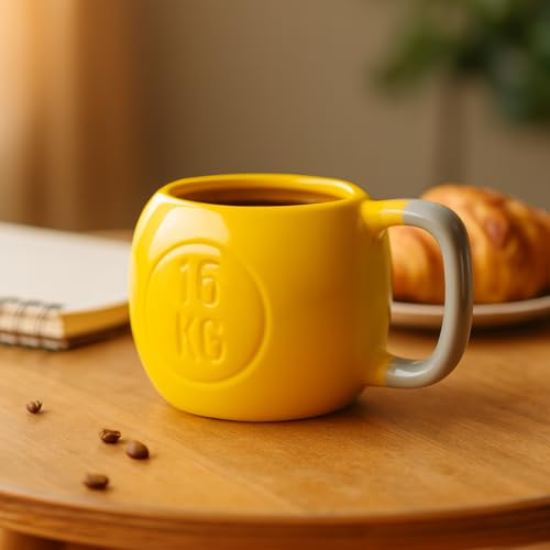 tasse en céramique de 350 ml en forme de kettlebell | Jaune | Compatible micro-ondes et lave-vaisselle | Idée cadeau originale pour le sport, le crossfit et les amateurs de fitness