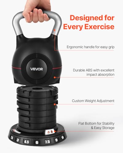 Spécification: VEVOR Kettlebell réglable avec 7 niveaux de poids, aluminium moulé sous pression et matériau ABS, pour entraînement de force de préhension, entraînement complet du corps et entraînement croisé