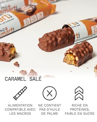 Soyez le premier à laisser votre avis sur “PhD Nutrition Smart Bar Barre protéinée 12x64g Caramel salé – En-cas High Protein avec 21g de protéines et peu de sucre, Barre protéinée macro-friendly”