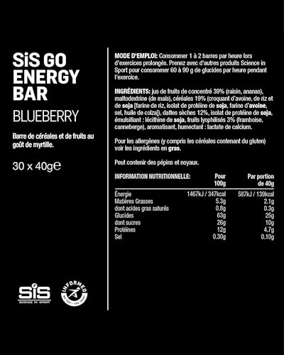 Description du produit Les barres énergétiques SiS Go fournissent une collation nutritive, facile à digérer et riche en glucides à base de vrais fruits et d’ingrédients sains. Les barres SiS Go Energy contiennent des glucides (44g), modérés en protéines (8g) et faibles en matières grasses (1g), ce qui en fait une collation hautement nutritive qui peut être utilisée pour augmenter la teneur quotidienne en glucides du régime alimentaire d’un athlète. Au fil des ans, de nombreux champions du monde, médaillés olympiques et athlètes d’élite ont utilisé les produits SiS pour répondre à leurs besoins d’entraînement et de compétition. 2012 l’a illustré avec 24 médaillés olympiques, le prix par équipe du Tour de France, le vainqueur du Tour de Grande-Bretagne et le prix du Roi des Montagnes et la victoire d’Andy Murray à l’US Open, tous alimentés par SiS. Les produits ont été les plus largement utilisés dans le peloton professionnel lors du Tour de France, avec Blanco Giant Nissan Trek, Katusha et Astana parmi les équipes utilisant une gamme de produits de nutrition sportive. Le développement du gel isotonique, SiS Go Gel, est connu depuis longtemps pour son innovation et est un exemple d’approche. Ce produit phare au Royaume-Uni est largement utilisé par les athlètes d’élite dans une gamme de sports d’endurance. L’engagement envers la science est au cœur du programme d’innovation, où les scientifiques du Rowett Institute de renommée mondiale de l’Université d’Aberdeen, ainsi que l’équipe de développement de produits de l’usine Nelson, travaillent ensemble pour assurer un flux continu de nouveaux produits.