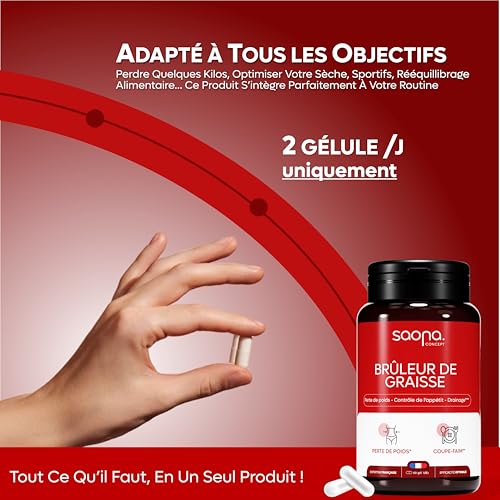 💪 FORMULE 5 EN 1 : Pour des Résultats Complet et Sain Notre complément alimentaire agit sur 5 leviers pour la perte de poids : brûleur de graisses puissant, réduction de l’appétit, stimule le métabolisme, drainage naturel et réduction de la fatigue. Un coup de pouce minceur complet pour vous accompagner dans votre programme minceur.