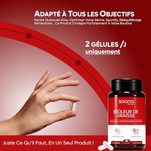 💪 FORMULE 5 EN 1 : Pour des Résultats Complet et Sain Notre complément alimentaire agit sur 5 leviers pour la perte de poids : brûleur de graisses puissant, réduction de l’appétit, stimule le métabolisme, drainage naturel et réduction de la fatigue. Un coup de pouce minceur complet pour vous accompagner dans votre programme minceur.