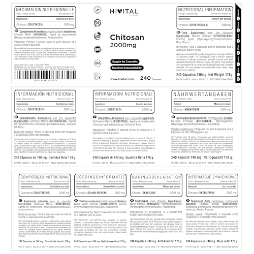 ❤️ LE MEILLEUR CHITOSAN: Chaque dose (4 gélules) contient 2000 mg de Chitosane Marin provenant du crustacé Crabe des Neiges (Chionoecetes Opilio). POSOLOGIE: Prendre 2 gélules avant le petit-déjeuner et 2 gélules avant le déjeuner.