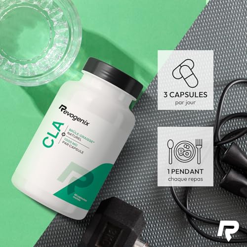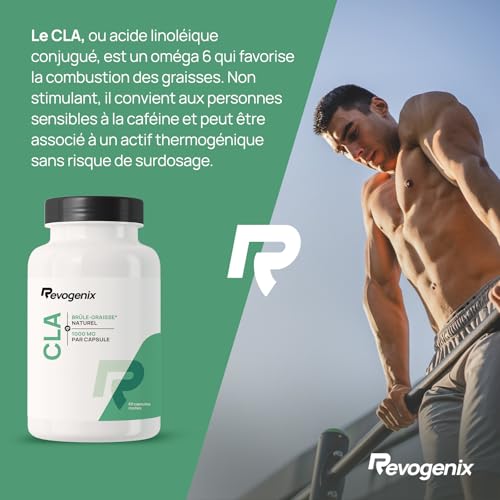 CLA 3000 mg | 80% d’Acide Linoléique Conjugué par dose | Brûleur de Graisse à Action Ciblé | 60 Capsules Vegan pour Hommes et Femmes | Alternative à la L-Carnitine | Fabriqué en France | Revogenix