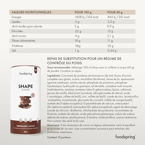 Shape Shake Chocolat – Substitut de repas complet pour le contrôle du poids avec des protéines de qualité supérieure, 202 kcal par portion, sans gluten – nouvelle recette (900g)
