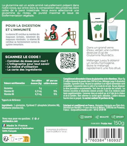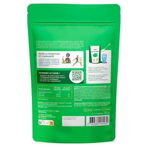 📸 SCANNEZ LE QR CODE – Vous aurez accès d’un simple geste à votre posologie personnalisée, à la notice d’utilisation complète de notre produit, à nos conseils d’experts et à la carte interactive de l’origine des ingrédients. De plus, une infographie ludique est disponible pour tout comprendre sur notre L-Glutamine. Gluten Free et sans gélatine !