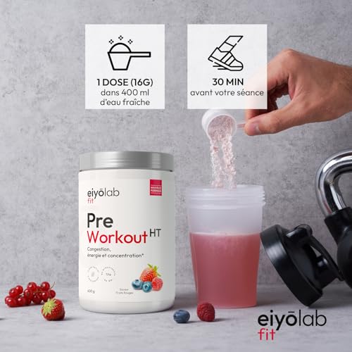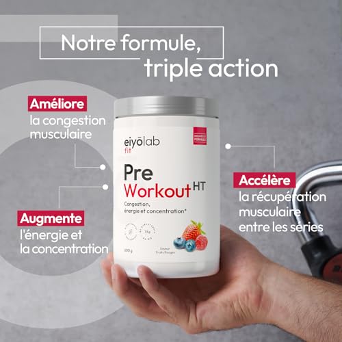 PRE WORKOUT HT | Booster Musculation sans Créatine | 3g de Bêta-Alanine + 3g de L-Arginine + 4g de Citrulline + 200mg de Caféine | Énergie + Congestion Musculaire | 600g | Fruits Rouges | Eiyolab