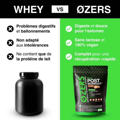 Protéines végétales post workout, BCAA, glycine, spiruline, chlorelle, vitamine C, calcium et magnésium | Fabrication française | Ozers Nutrition (Cookie, 700 grammes)