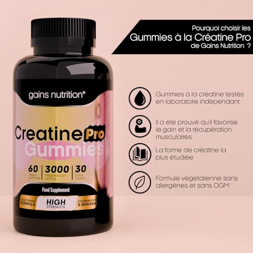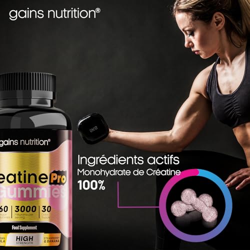 GN Creatine Pro Gummies | 60 Gommes à Croquer Créatine pour Hommes Femmes – 3000 mg de Monohydrate de Créatine par Portion | Saveur Fraise et Banane Sans OGM Convient aux Végétaliens et Végétariens