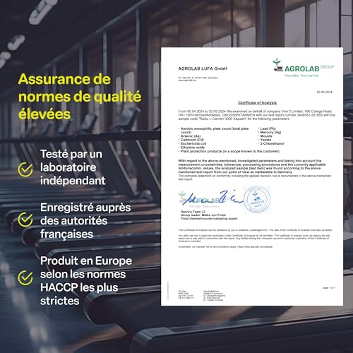 PURETÉ ET INGRÉDIENTS DE HAUTE QUALITÉ : Nos capsules de L-Carnitine vegan à haute dose sont sans lactose, sans gluten et sans additifs nocifs. Idéales pour un mode de vie équilibré.