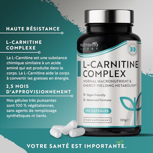 ✔ POURQUOI LE COMPLEXE L-CARNITINE DE NUTRAVITA ? – La L-Carnitine est un produit chimique similaire à un acide aminé qui est produit dans le corps. La L-Carnitine aide le corps à transformer les graisses en énergie. Notre produit a été mélangé avec de la vitamine D3, de la vitamine B2, B3 et B6, de la biotine et du chrome pour des avantages supplémentaires.