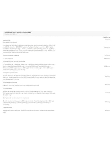 WITH CREATINE MONOHYDRATE: The creatine in HOT BLOOD HARDCORE enhances physical performance during short bursts of high intensity exercise. The beneficial effect is achieved with a daily intake of 3 g of creatine.