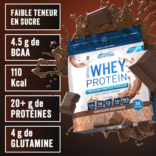 Applied Nutrition Critical Whey Protein Powder 900g – High Protein Powder, Protein Milkshake, Muscle Building Supplement with BCAAs & Glutamine (900g – 30 Servings) (Chocolate)