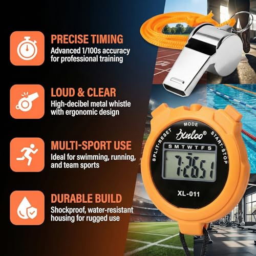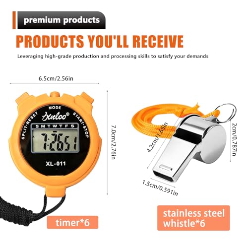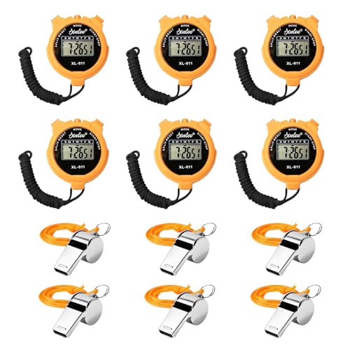 Ensemble polyvalent avec sifflets en acier inoxydable : Cet Digital Sport Stoppuhr Timer six chronomètres numériques sportifs et six sifflets de haute qualité en acier inoxydable avec cordons jaunes. C’est le choix idéal pour les entraîneurs, les arbitres et les événements sportifs – une fonctionnalité maximale grâce à la combinaison du chronomètre, du minuteur et de la signalisation.
