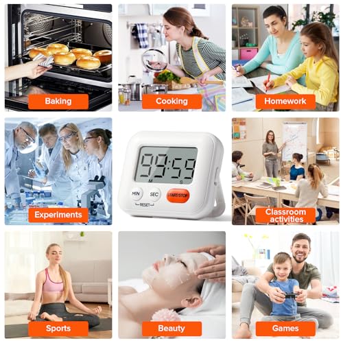 Large Application: cette minuterie convient non seulement à la cuisine et à la pâtisserie, mais peut également être utilisée pour diverses occasions de chronométrage telles que l’entraînement physique, les devoirs, les examens, les jeux, les activités en classe, etc.