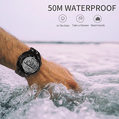 50 m étanche montre pour un usage quotidien : étanche à 50 m et matériaux durables adaptées pour tous les temps et peuvent être utilisés pendant une longue période. Usage quotidien imperméable à l’eau, lavage à la main, la pluie jour, transpiration, baignade, pas de problème, mais veuillez ne pas appuyer sur les boutons dans l’eau
